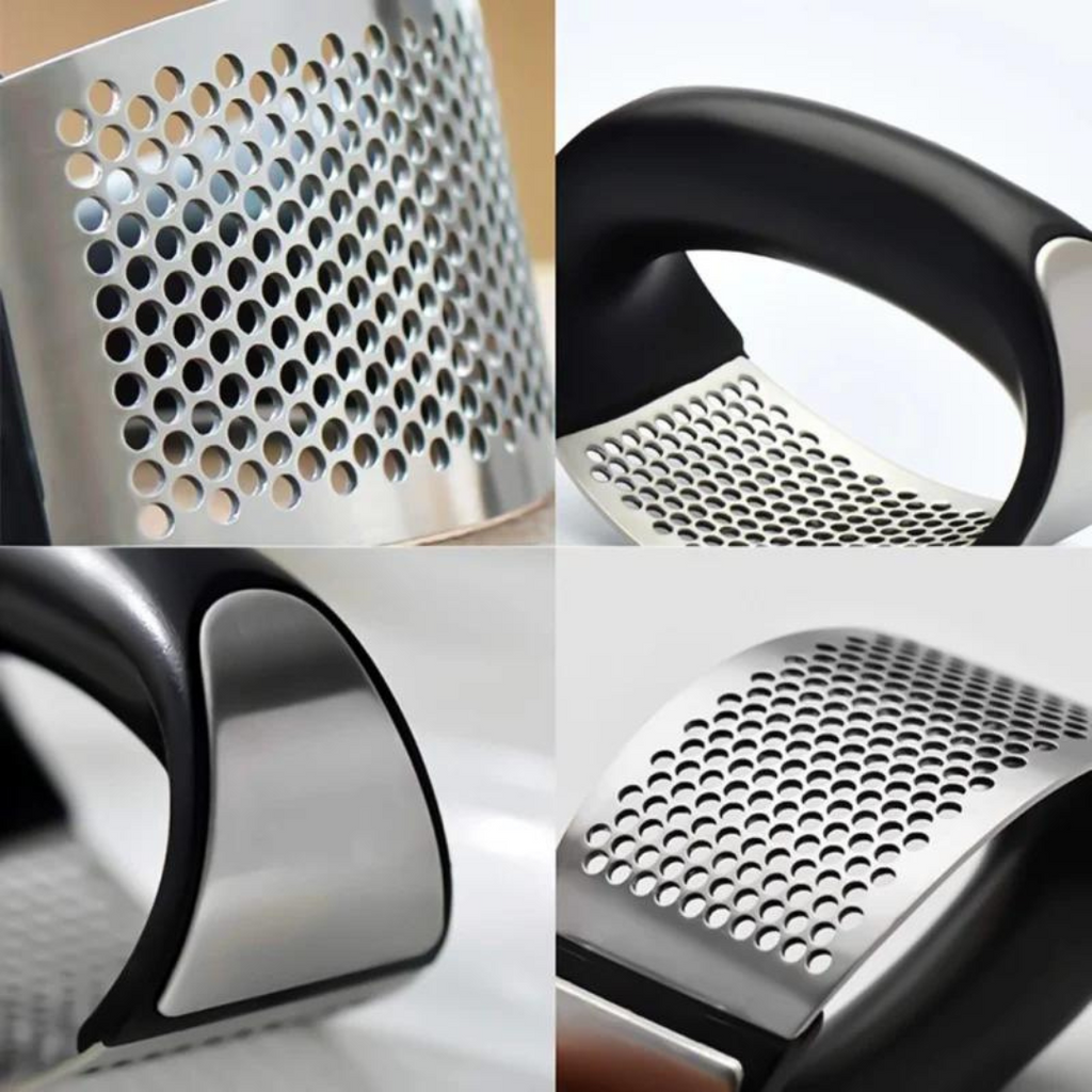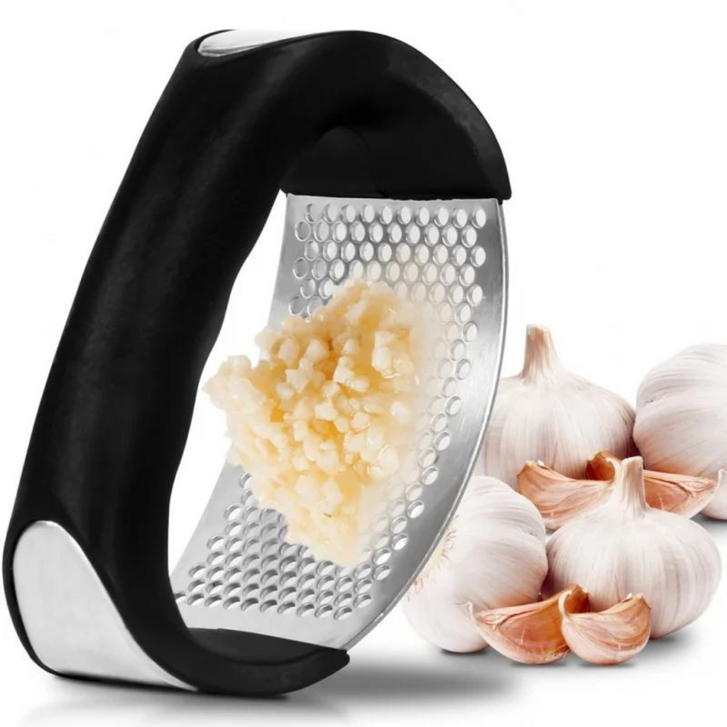 1 x Amassador de alho manual em aço inoxidável.